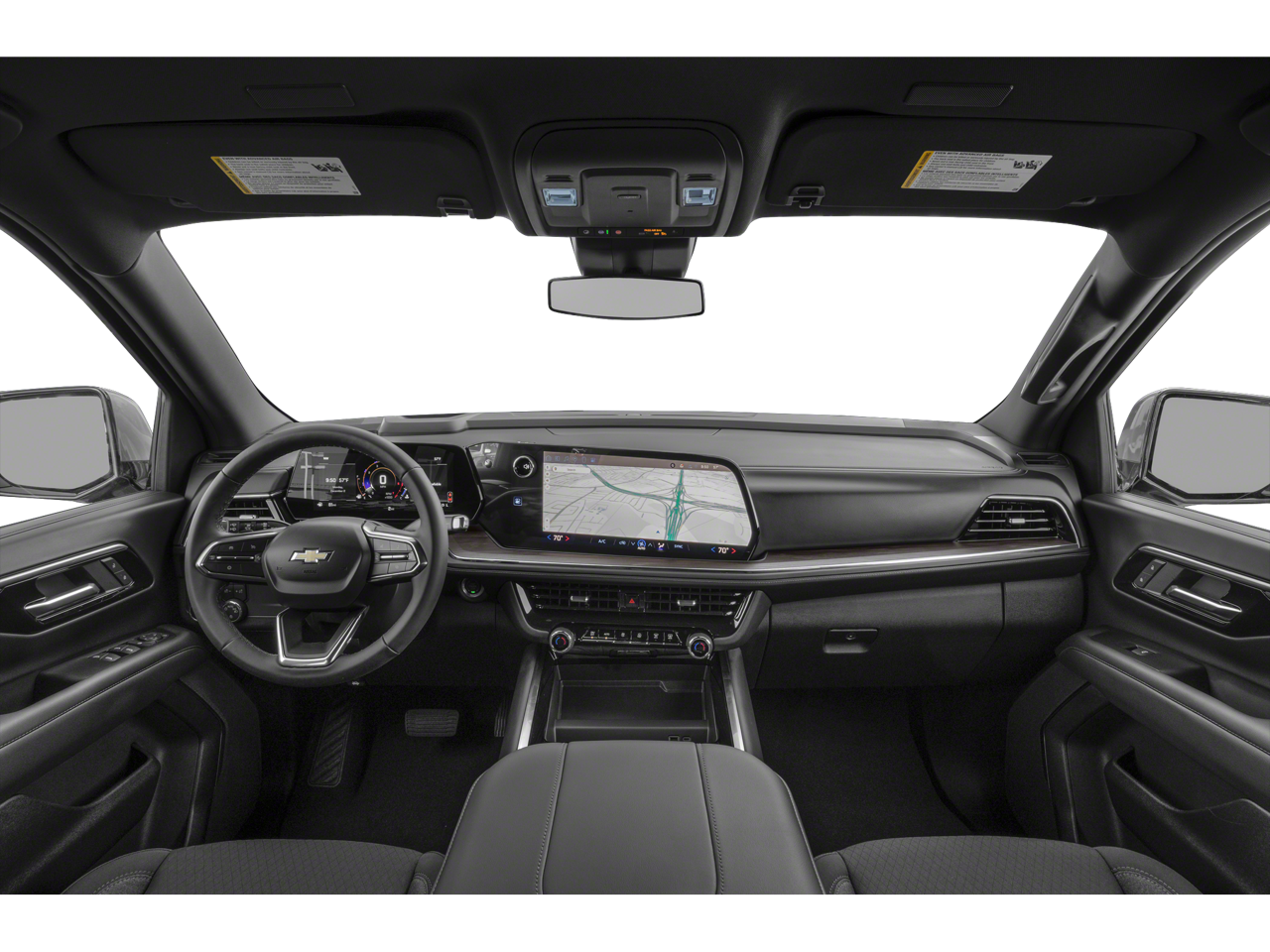 2-Way Driver Power Lumbar Seat Adjuster, 2-Way Front Passenger Power Lumbar Seat Adjuster, 3.23 Rear Axle Ratio, 3rd row seats: split-bench, 4-Wheel Disc Brakes, 6 Speakers, 6-Speaker Audio System, 6-Way Power Front Passenger Seat Adjuster, 8-Way Power Driver Seat Adjuster, ABS brakes, Air Conditioning, Alloy wheels, AM/FM radio: SiriusXM with 360L, Apple CarPlay/Android Auto, Auto High-beam Headlights, Automatic temperature control, Brake assist, Bumpers: body-color, Compass, Delay-off headlights, Driver door bin, Driver vanity mirror, Dual front impact airbags, Dual front side impact airbags, Electronic Stability Control, Emergency communication system: OnStar Services capable, Exterior Parking Camera Rear, Four wheel independent suspension, Front anti-roll bar, Front Bucket Seats, Front Center Armrest, Front dual zone A/C, Front reading lights, Fully automatic headlights, Heated door mirrors, Illuminated entry, Low tire pressure warning, Navigation system: Google built-in compatibility (select service plan required, terms and limitations apply), Occupant sensing airbag, Outside temperature display, Overhead airbag, Overhead console, Panic alarm, Passenger door bin, Passenger vanity mirror, Power door mirrors, Power driver seat, Power passenger seat, Power steering, Power windows, Preferred Equipment Group 1LS, Premium Cloth Seat Trim, Premium Smooth Ride Suspension, Radio data system, Radio: 17.7" Diagonal Advanced Color LCD Display, Rain sensing wipers, Rear air conditioning, Rear anti-roll bar, Rear reading lights, Rear seat center armrest, Rear window defroster, Rear window wiper, Remote keyless entry, Security system, SiriusXM with 360L Trial Subscription, Speed control, Speed-sensing steering, Split folding rear seat, Spoiler, Steering wheel mounted audio controls, Tachometer, Telescoping steering wheel, Tilt steering wheel, Traction control, Trip computer, Variably intermittent wipers, Voltmeter, Wheels: 18" x 8.5" Bright Silver Painted Aluminum, Wireless Apple CarPlay/Wireless Android Auto.
