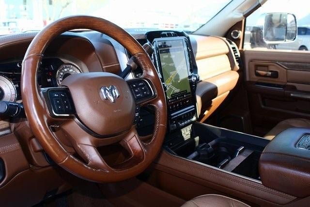 1-Year SiriusXM Guardian Trial, 10 Speakers, 115V Auxiliary Rear Power Outlet, 12" Touchscreen Display, 17 Speaker High Performance Audio, 2 Way Rear Headrest Seat, 220 Amp Alternator, 3.73 Axle Ratio, 4 Way Front Headrests, 4-Wheel Disc Brakes, 6000# Front Axle w/Hub Ext, ABS brakes, Active Noise Control System, Adaptive Cruise Control w/Stop, Adjustable pedals, Air Conditioning, Alloy wheels, AM/FM radio: SiriusXM, Apple CarPlay, Apple CarPlay/Android Auto, Audio memory, Auto High-beam Headlights, Auto-dimming Rear-View mirror, Automatic temperature control, Blind Spot & Cross Path Detection, Box & Rear Fender Clearance Lamps, Brake assist, Bucket Seats, Bumpers: chrome, Center Hub, Chrome Flat Cab-Length Side Steps, Chrome Tow Hooks, Clearance Lamps, Compass, CTR Stop Lamp w/Cargo View Camera, Delay-off headlights, Disassociated Touchscreen Display, Driver door bin, Driver vanity mirror, Dual front impact airbags, Dual front side impact airbags, Dual Rear Wheels, Electronic Stability Control, Electronically Controlled Throttle, Emergency communication system: SiriusXM Guardian, Folding Flat Load Floor Storage, Front anti-roll bar, Front Bucket Seats, Front Center Armrest w/Storage, Front dual zone A/C, Front fog lights, Front reading lights, Front Seat Back Map Pockets, Full Length Premium Upgraded Floor Console, Full Speed Forward Collision Warning Plus, Fully automatic headlights, Garage door transmitter, Genuine wood console insert, Genuine wood dashboard insert, Genuine wood door panel insert, Google Android Auto, GPS Antenna Input, GPS Navigation, HD Radio, Heated door mirrors, Heated Front Seats, Heated front seats, Heated rear seats, Heated Second Row Seats, Heated Steering Wheel, Heated steering wheel, High Back Seats, I/P Mounted Auxiliary Switches, Illuminated entry, Integrated Voice Command w/Bluetooth®, Leather steering wheel, Longhorn Level 1 Equipment Group, Low tire pressure warning, Manufacturer's Statement of Origin, Memory seat, Navigation System, Occupant sensing airbag, Outside temperature display, Overhead airbag, Overhead console, Panic alarm, ParkView Rear Back-Up Camera, Passenger door bin, Passenger vanity mirror, Pedal memory, Power 8-Way Adjustable Passenger Seat, Power Adjust 8-Way Driver Seat, Power Deployable Running Boards, Power door mirrors, Power driver seat, Power passenger seat, Power steering, Power Sunroof, Power windows, Premium Filigree Leather Seats, Protection Group, Quick Order Package 2HK Longhorn, Radio data system, Radio: Uconnect 12.0 w/Navigation, Radio: Uconnect 4C Nav w/8.4" Display, Rain sensing wipers, Ramcharger Wireless Charging Pad, Rear 60/40 Folding Seat, Rear reading lights, Rear seat center armrest, Rear step bumper, Rear Wheelhouse Liners, Rear window defroster, Remote CD player, Remote keyless entry, Safety Group, Security system, Selectable Tire Fill Alert (DISC), SiriusXM Satellite Radio, SiriusXM Traffic Plus, SiriusXM Travel Link, SiriusXM w/360L, Speed control, Split folding rear seat, Steering wheel mounted audio controls, Surround View Camera System, Tachometer, Tilt steering wheel, Tip Start, Tire Pressure Monitoring Delete, Towing Technology Group, Traction control, Trailer Reverse Guidance, Trip computer, Turn signal indicator mirrors, USB Host Flip, Variably intermittent wipers, Ventilated Front Seats, Ventilated front seats, Voltmeter, Wheels: 17" x 6.0" Premium Aluminum, Wheels: 18" x 8.0" Polished Aluminum.