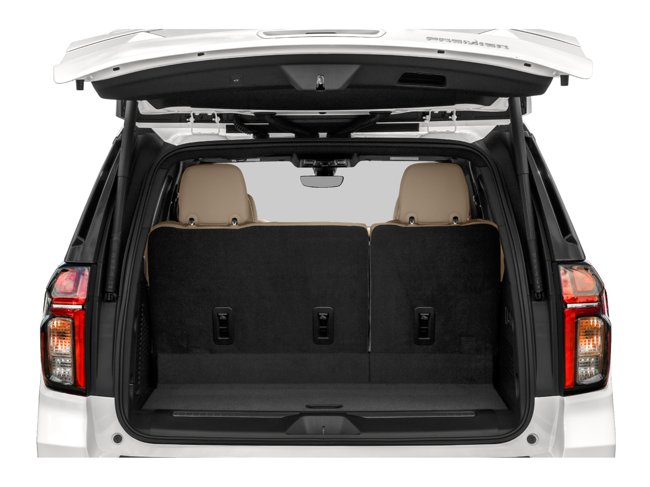 Jet Black Leather, 10 Speakers, 1st & 2nd Row Color-Keyed Carpeted Floor Mats, 20" x 9" Polished Aluminum Wheels, 3.23 Rear Axle Ratio, 3rd Row 60/40 Power-Folding Split-Bench Seat, 3rd row seats: split-bench, 4-Wheel Disc Brakes, ABS brakes, Adaptive suspension, Air Conditioning, Alloy wheels, AM/FM radio: SiriusXM with 360L, Apple CarPlay/Android Auto, Auto High-beam Headlights, Auto-dimming door mirrors, Auto-Dimming Inside Rear-View Mirror, Auto-dimming Rear-View mirror, Auto-leveling suspension, Automatic temperature control, Bose 10-Speaker Centerpoint Surround Audio Sys Ft, Brake assist, Bright Front & Rear Door Sill Plates, Bumpers: body-color, Chrome Door Handles w/Body-Color Strip, Chrome Mirror Caps, Color-Keyed Carpeting Floor Covering, Compass, Delay-off headlights, Deleted 3 Years of Remote Access, Driver & Front Outboard Passenger Airbags, Driver door bin, Driver vanity mirror, Dual Exhaust System, Dual front impact airbags, Dual front side impact airbags, Electronic Stability Control, Emergency communication system: OnStar and Chevrolet connected services capable, Enhanced Driver Information Center, Floor Console, Four wheel independent suspension, Front anti-roll bar, Front Bucket Seats, Front Center Armrest, Front dual zone A/C, Front High-Back Reclining Bucket Seats, Front reading lights, Fully automatic headlights, Garage door transmitter, Hands-Free Rear Power Programmable Liftgate, Heated & Ventilated Driver & Front Passenger Seats, Heated 2nd Row Outboard Seats, Heated door mirrors, Heated Driver & Front Passenger Seats, Heated front seats, Heated rear seats, Heated Steering Wheel, Heated steering wheel, Illuminated entry, Infotainment Display, Lane Change Alert w/Side Blind Zone Alert, LED Daytime Running Lamps, License Plate Front Mounting Package, Low tire pressure warning, Magnetic Ride Control Suspension, Memory seat, Memory Settings, Navigation System, Not Equipped w/4-Way Driver & Fr Pass Pwr Lumbar, Occupant sensing airbag, Outside Heated Power-Adjustable Mirrors, Outside temperature display, Overhead airbag, Overhead console, Panic alarm, Passenger door bin, Passenger vanity mirror, Perforated Leather Seat Trim, Power door mirrors, Power driver seat, Power Liftgate, Power passenger seat, Power Release 2nd Row Bucket Seats, Power steering, Power Tilt & Telescopic Steering Column, Power windows, Preferred Equipment Group 1LZ, Premium audio system: Chevrolet Infotainment 3 Premium, Radio: Chevrolet Infotainment 3 Premium System, Rain sensing wipers, Rear air conditioning, Rear anti-roll bar, Rear Cross Traffic Alert, Rear reading lights, Rear window defroster, Rear window wiper, Remote keyless entry, Remote Start, Roof rack: rails only, Safety Alert Seat, Security system, SiriusXM Radio w/360L, Speed control, Speed-sensing steering, Split folding rear seat, Spoiler, Steering wheel memory, Steering wheel mounted audio controls, Tachometer, Telescoping steering wheel, Tilt steering wheel, Traction control, Trip computer, Turn signal indicator mirrors, Universal Home Remote, Variably intermittent wipers, Ventilated front seats, Voltmeter, Wireless Charging, Wrapped Steering Wheel, Jet Black Leather.
