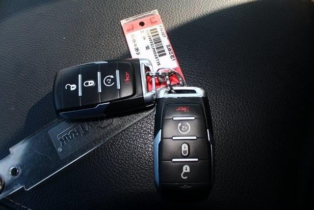 2nd Row In Floor Storage Bins, 3 Rear Seat Head Restraints, 4 Way Front Headrests, 4-Wheel Disc Brakes, 48V Belt Starter Generator, 4G LTE Wi-Fi Hot Spot, 6 Speakers, 8.4" Touchscreen Display, ABS brakes, Air Conditioning, Alloy wheels, AM/FM radio, Anti-Spin Differential Rear Axle, Apple CarPlay, Auto-Dimming Exterior Driver Mirror, Auto-Dimming Rear-View Mirror, Big Horn Badge, Big Horn Level 1 Equipment Group, Black Exterior Mirrors, Black Interior Accents, Black Premium Power Mirrors, Bluetooth® Handsfree Phone & Audio, Body Color Door Handles, Body Color Exterior Mirrors, Body Color Front Bumper, Body Color Premium Power Mirrors, Body Color Rear Bumper w/Step Pads, Brake assist, Bucket Seats, Bumpers: chrome, Center Console Parts Module, Class IV Receiver Hitch, Cloth Bench Seat, Compass, Connectivity - US/Canada, Convex Wide-Angle Exterior Mirror Insert, Delay-off headlights, Deluxe Cloth Bucket Seats, Driver door bin, Dual front impact airbags, Dual front side impact airbags, Electric Shift-On-Demand Transfer Case, Electronic Stability Control, Emergency communication system: SiriusXM Guardian, Exterior Mirrors Courtesy Lamps, Exterior Mirrors w/Heating Element, Exterior Mirrors w/Supplemental Signals, For Details, Visit DriveUconnect.com, For More Info, Call 800-643-2112, Front anti-roll bar, Front Center Armrest w/Storage, Front Fog Lamps, Front License Plate Bracket, Front reading lights, Front Seat Back Map Pockets, Front wheel independent suspension, Full Length Floor Console, Fully automatic headlights, Global Telematics Box Module (TBM), Glove Box Lamp, Google Android Auto, GPS Antenna Input, Heated door mirrors, Heated Front Seats, Heated Steering Wheel, Illuminated entry, Integrated Center Stack Radio, Integrated Voice Command w/Bluetooth®, Leather steering wheel, Low tire pressure warning, Manual Adjust 4-Way Front Passenger Seat, MOPAR Front & Rear Rubber Floor Mats, Occupant sensing airbag, Outside temperature display, Overhead airbag, Overhead console, Panic alarm, ParkView Rear Back-Up Camera, Passenger door bin, Passenger Sun Visor w/Illuminated Mirror, Passenger vanity mirror, Power 2-Way Driver Lumbar Adjust, Power 8-Way Driver Seat, Power door mirrors, Power steering, Power windows, Power-Folding Mirrors, Quick Order Package 23Z Big Horn, Radio data system, Radio: Uconnect 3 w/5" Display, Radio: Uconnect 5 W w/8.4" Display, RAM Grille Badge - Chrome, Rear 60/40 Folding Seat, Rear anti-roll bar, Rear Center Armrest, Rear Dome w/On/Off Switch Lamp, Rear Power Sliding Window, Rear seat center armrest, Rear step bumper, Rear Wheelhouse Liners, Rear Window Defroster, Remote keyless entry, Remote Start System, SiriusXM Satellite Radio, Speed control, Split folding rear seat, Sport Appearance Package, Sport Decal, Steering wheel mounted audio controls, Tachometer, Telescoping steering wheel, Tilt steering wheel, Traction control, Trip computer, USB Host Flip, Variably intermittent wipers, Voltmeter, Wheels: 18" x 8" Cast-Aluminum Painted.